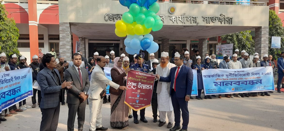 শহিদুল ইসলাম শহিদ ,সাতক্ষীরা : “দুর্নীতির বিরুদ্ধে তারুণ্যের একতা : গড়বে আগামীর শুদ্ধতা” এই প্রতিপাদ্যকে সামনে রেখে সাতক্ষীরায় আন্তর্জাতিক দুর্নীতি বিরোধী দিবস ২০২৫ উপলক্ষে মানববন্ধন ও আলোচনা সভা অনুষ্ঠিত হয়েছে। মঙ্গলবার (০৯ ডিসেম্বর) সকাল ৯টায় সাতক্ষীরা জেলা প্রশাসকের কার্যালয়ের সামনে জেলা প্রশাসন, দুর্নীতি দমন কমিশন সজেকা খুলনা ও জেলা দুর্নীতি প্রতিরোধ কমিটির সাতক্ষীরার আয়োজনে জেলা দুর্নীতি প্রতিরোধ কমিটির সভাপতি বিশিষ্ট সমাজসেবক আলহাজ্ব ডা. আবুল কালাম বাবলা এঁর সভাপতিত্বে প্রধান অতিথি হিসেবে জাতীয় ও দুদক পতাকা উত্তোলন এবং বেলুন-ফেস্টুন উড়িয়ে আন্তর্জাতিক দুর্নীতি বিরোধী দিবসের অনুষ্ঠানিক উদ্বোধন করেন সাতক্ষীরা জেলা প্রশাসক মিজ্ আফরোজা আখতার, জেলা পুলিশ সুপার মো. আরেফিন জুয়েল বিপিএম, সাতক্ষীরা সিভিল সার্জন ডা. মো. আব্দুস সালাম, অতিরিক্ত জেলা প্রশাসক (সার্বিক) বিষ্ণুপদ পাল, দুর্নীতি দমন কমিশন সজেকা খুলনার সহকারী পরিচালক মো. জাহিদ ফজল প্রমুখ। প্রধান অতিথির বক্তব্যে জেলা প্রশাসক বলেন, পরিবার থেকেই দুর্নীতি প্রতিরোধের চর্চা শুরু করতে হবে। আমরা যদি যথাসময়ে অফিসে না আসি এটাও একটি দুর্নীতি এবং সঠিক দায়িত্ব পালন না করাটা ও দুর্নীতি। সততা, দক্ষতা ও সাহসিকতা থাকলেই দুর্নীতি প্রতিরোধ করা সম্ভব। তারুণ্যকে সঠিক পথে পরিচালিত করতে হবে তাহলেই দুর্নীতি আর মাথা চাড়া দিয়ে উঠবে না।