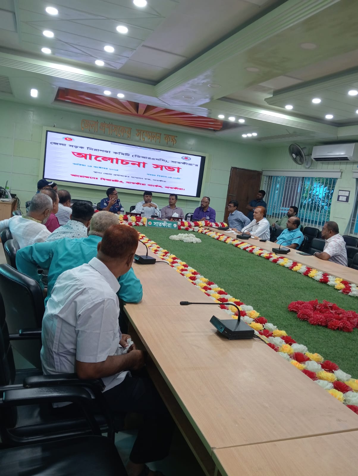 শহিদুল ইসলাম শহিদ : সাতক্ষীরায় জেলা সড়ক নিরাপত্তা কমিটি (ডিআরএসসি) উদ্যোগে জেলা প্রশাসকের সম্মেলন কক্ষে বিকাল ৪টায় জেলা প্রশাসক মোস্তাক আহমেদ এর সভাপতিত্বে একটি আলোচনা সভা অনুষ্ঠিত হয়। সভায় জেলার সড়ক নিরাপত্তা, দুর্ঘটনা রোধে করণীয়, ট্রাফিক ব্যবস্থাপনা ও জনসচেতনতা বৃদ্ধি নিয়ে বিস্তৃত আলোচনা করা হয়।