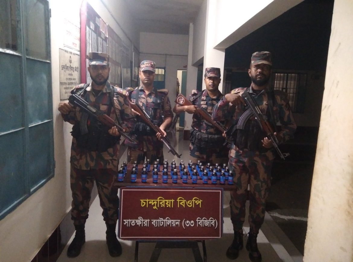গোয়েন্দা তথ্যের ভিত্তিতে ভোমরা বিওপির এর আভিযানিক দল মেইন পিলার-৩/৫ এস হতে ২০০ গজ বাংলাদেশের অভ্যন্তরে সাতক্ষীরা সদর থানাধীন লক্ষীদাড়ি নামক স্থান হতে ৩৫,০০০/- ভারতীয় শাড়ি আটক করে। বৈকারী বিওপির এর আভিযানিক দল মেইন পিলার-৭/১৫ এস হতে বাংলাদেশের অভ্যন্তরে সাতক্ষীরা সদর থানাধীন নতুনপাড়া নামক স্থান হতে ৫২,০০০/- টাকা মূল্যের ভারতীয় ঔষধ আটক করে। তলুইগাছা বিওপির এর আভিযানিক দল মেইন পিলার-১৩ হতে বাংলাদেশের অভ্যন্তরে সাতক্ষীরা সদর থানাধীন চারাবাড়ি বাশবাগান নামক স্থান হতে ১,৪০,০০০/- টাকা মূল্যের ভারতীয় ঔষধ আটক করে। কাকডাঙ্গা বিওপির পৃথক তিনটি বিশেষ আভিযানিক দল সীমান্ত পিলার-১৩/৩ এস এর ৫ আরবি হতে আনুমানিক ৩০০ গজ বাংলাদেশের অভ্যন্তরে কলারোয়া থানাধীন ভাদিয়ালী নামক স্থান হতে ৬,২০,০০০/- টাকা মূল্যের ভারতীয় ঔষধ ও শাড়ি আটক করে। মাদরা বিওপির পৃথক দুইটি বিশেষ আভিযানিক দল সীমান্ত পিলার-১৩/৩ এস এর ৭ ও ৮ আরবি হতে আনুমানিক ৩০০-৪০০ গজ বাংলাদেশের অভ্যন্তরে কলারোয়া থানাধীন ফুলতলা বাজার ও চান্দা নামক স্থান হতে ৭০,০০০/- টাকা মূল্যের ভারতীয় শাড়ি আটক করে। এছাড়াও চান্দুরিয়া বিওপি পৃথক দুইটি বিশেষ আভিযানিক দল সীমান্ত পিলার-১৭/৩ এস ও ১৭/৩ এস এর ১৮ আরবি হতে আনুমানিক ৩০০-৪০০ গজ বাংলাদেশের অভ্যন্তরে কলারোয়া থানাধীন গোয়ালপাড়া ও শ্বশান ঘাট নামক স্থান হতে ২৯,২০০/- টাকা মূল্যের ৭৩ বোতল ভারতীয় ফেনসিডিল আটক করে।সর্বমোট ৯,৪৬,২০০/- (নয় লক্ষ ছেচল্লিশ হাজার দুইশত) টাকা মূল্যের বিভিন্ন চোরাচালানী মালামাল আটক করে।
