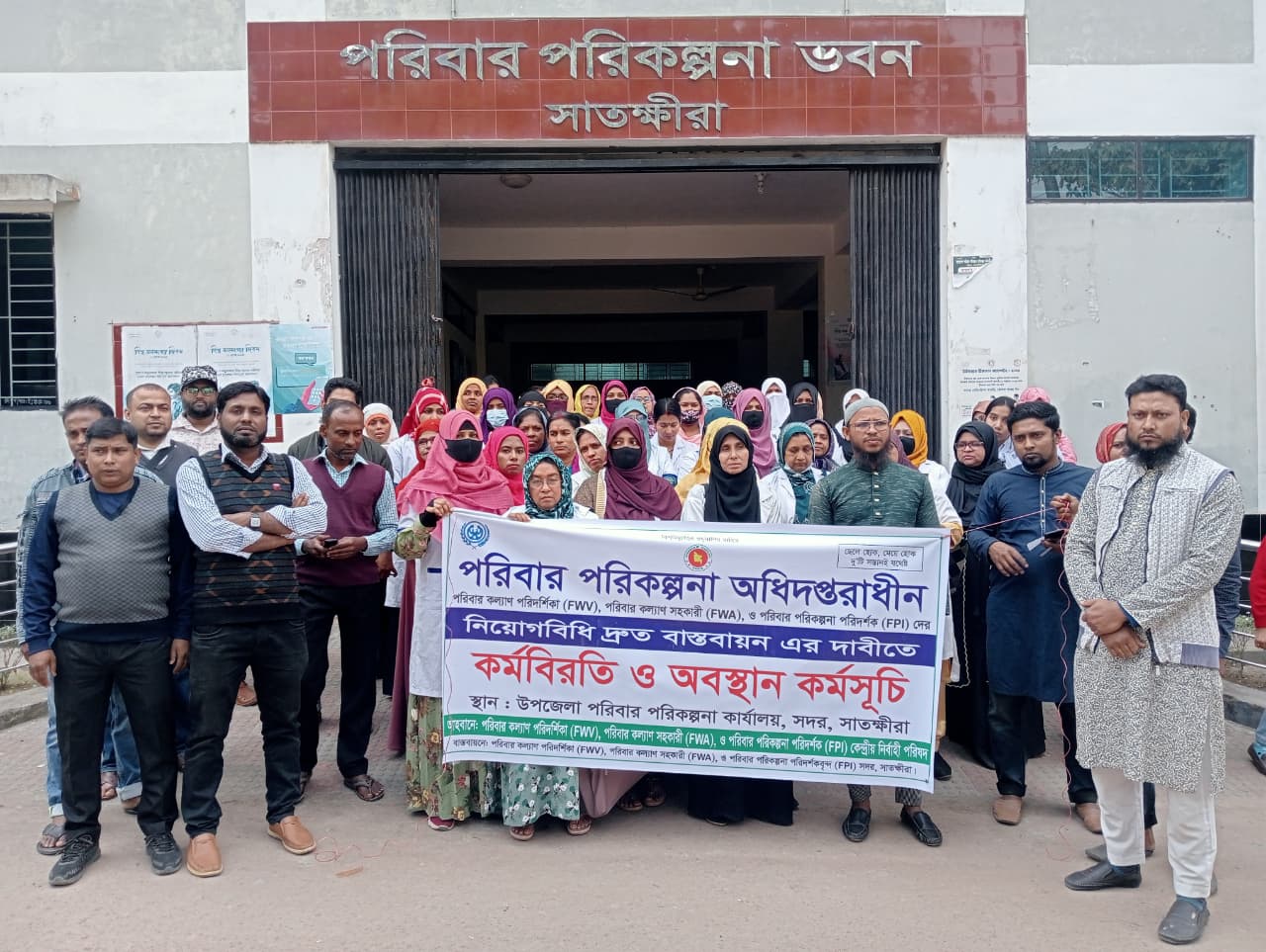 শহিদুল ইসলাম শহিদ : পরিবার কল্যাণ পরিদর্শক (FPI), পরিবার কল্যাণ সহকারী (FWA) এবং পরিবার পরিকল্পনা পরিদর্শক (FPI) দের নিয়োগবিধি দ্রুত বাস্তবায়নসহ ৫ দফা দাবির প্রেক্ষিতে সাতক্ষীরায় কর্মবিরতি ও অবস্থান কর্মসূচি পালন করেছেন পরিবার পরিকল্পনা অধিদপ্তরের অধীন কর্মকর্তা-কর্মচারীরা।