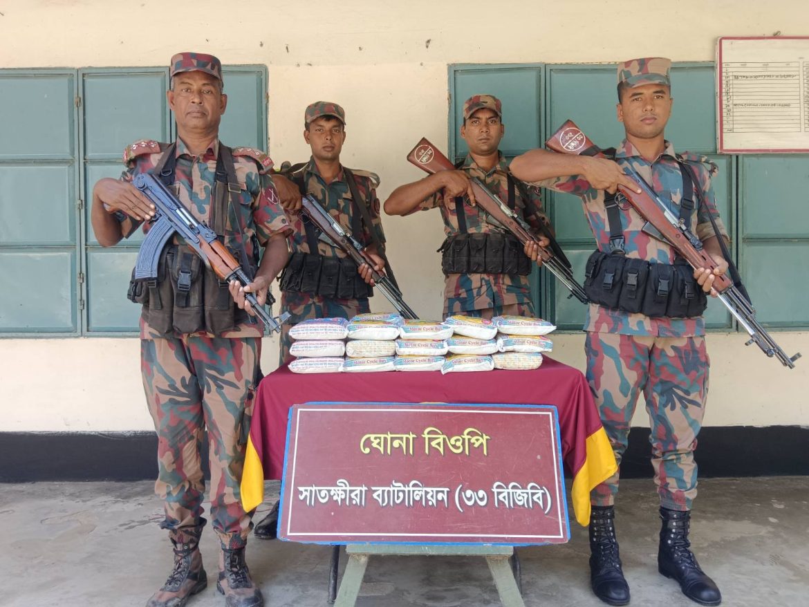 গোয়েন্দা তথ্যের ভিত্তিতে ভোমরা বিওপির এর আভিযানিক দল মেইন পিলার-৩ হতে ৫০০ গজ বাংলাদেশের অভ্যন্তরে সাতক্ষীরা সদর থানাধীন ফলমোড় নামক স্থান হতে ৬,৯০০/- ভারতীয় প্রেসার কুকার আটক করে। ঘোন বিওপির এর আভিযানিক দল মেইন পিলার-৬/৫ এস হতে ২০০ গজ বাংলাদেশের অভ্যন্তরে সাতক্ষীরা সদর থানাধীন পায়রাডাঙ্গা আমাবাগন নামক স্থান হতে ৮,২০০/- ভারতীয় বিড়ি আটক করে। তলুইগাছা বিওপির এর আভিযানিক দল মেইন পিলার-১৩/৩ এস এর ৩ আরবি হতে বাংলাদেশের অভ্যন্তরে সাতক্ষীরা সদর থানাধীন মুজুরদারের খাল নামক স্থান হতে ৪৫,০০০/- টাকা মূল্যের ভারতীয় ঔষধী গাছের বাকল আটক করে। মাদরা বিওপির বিশেষ আভিযানিক দল সীমান্ত পিলার-১৩/৩ এস এর ৮ আরবি হতে আনুমানিক ৪০০ গজ বাংলাদেশের অভ্যন্তরে কলারোয়া থানাধীন চান্দা নামক স্থান হতে ৩৫,০০০/- টাকা মূল্যের ভারতীয় শাড়ি আটক করে। হিজলদী বিওপির বিশেষ আভিযানিক দল সীমান্ত পিলার-১৩/৪ এস হতে আনুমানিক ৩০০ গজ বাংলাদেশের অভ্যন্তরে কলারোয়া থানাধীন শিশুতলা নামক স্থান হতে ২,১০,০০০/- টাকা মূল্যের ভারতীয় ঔষধ আটক করে। এছাড়াও, ঝাউডাঙ্গা বিশেষ ক্যাম্পের বিশেষ আভিযানিক দল বাংলাদেশের অভ্যন্তরে সাতক্ষীরা থানাধীন হরিণা নামক স্থান হতে ৩০,০০০/- টাকা মূল্যের ২০ বোতল ভারতীয় মদ আটক করে।